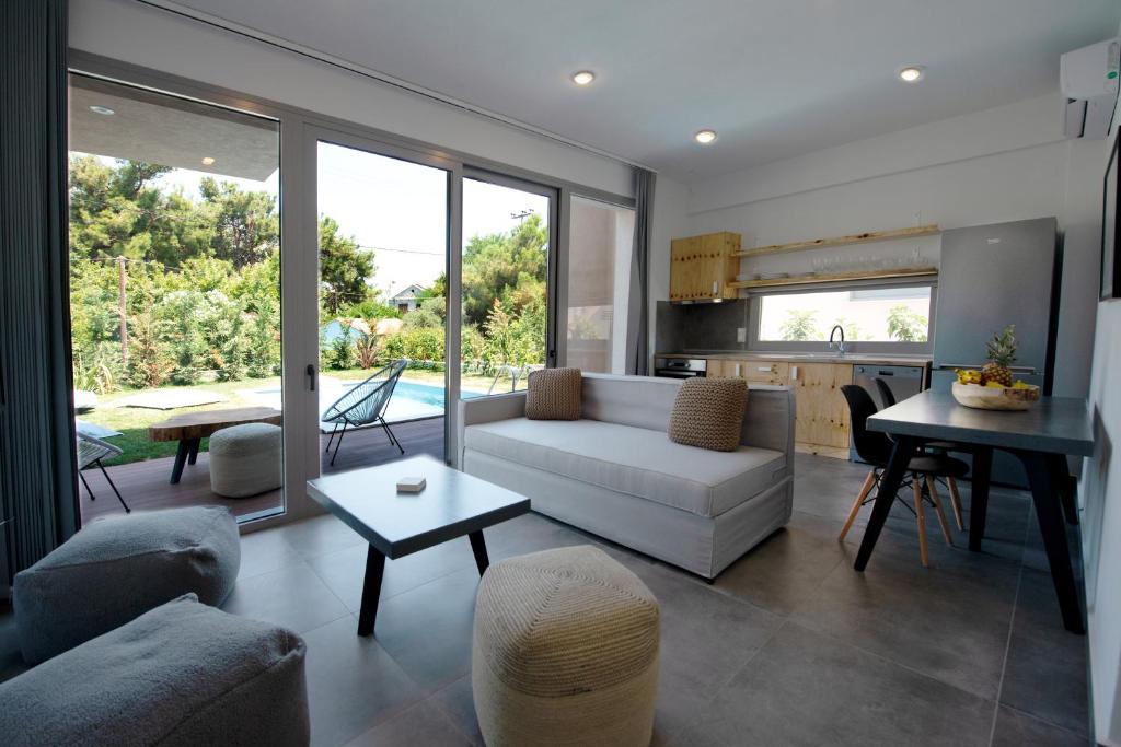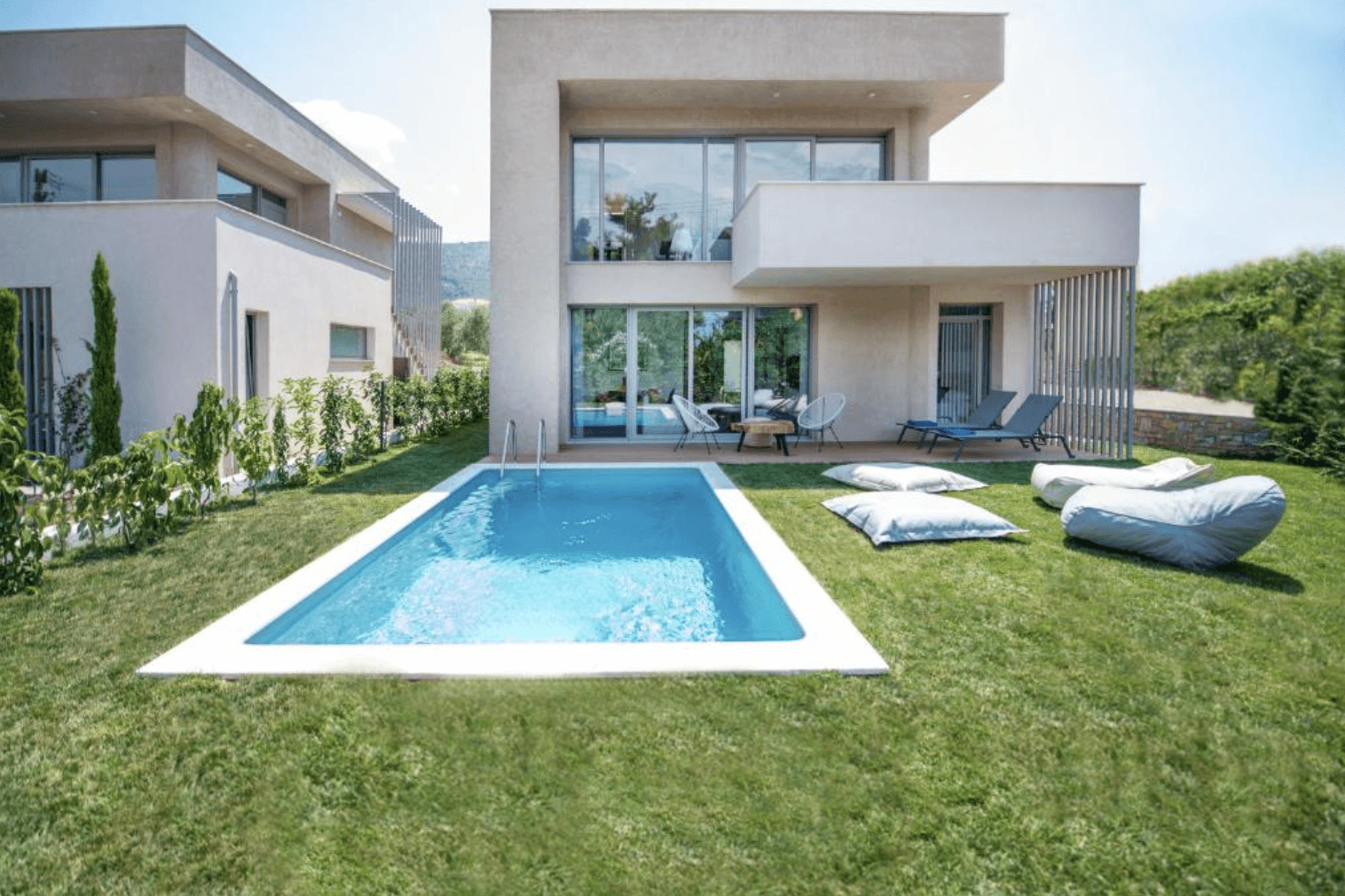 A modern, design-led seaside villa complex on the island of Thassos, located just steps from a quiet beach and surrounded by pine trees and open coastal space. The combination of private villas, shared outdoor living, pool areas, and full privacy makes it ideal for small team retreats, informal bonding, and relaxed offsites focused on connection rather than structure.